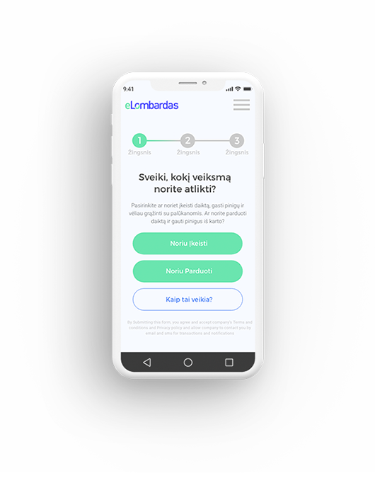 Užpildykite trumpą registracijos formą: pažymėkite specifines įkeičiamo ar parduodamo daikto savybes, įkelkite kokybiškas nuotraukas ir nurodykite pageidaujamą gauti pinigų sumą.